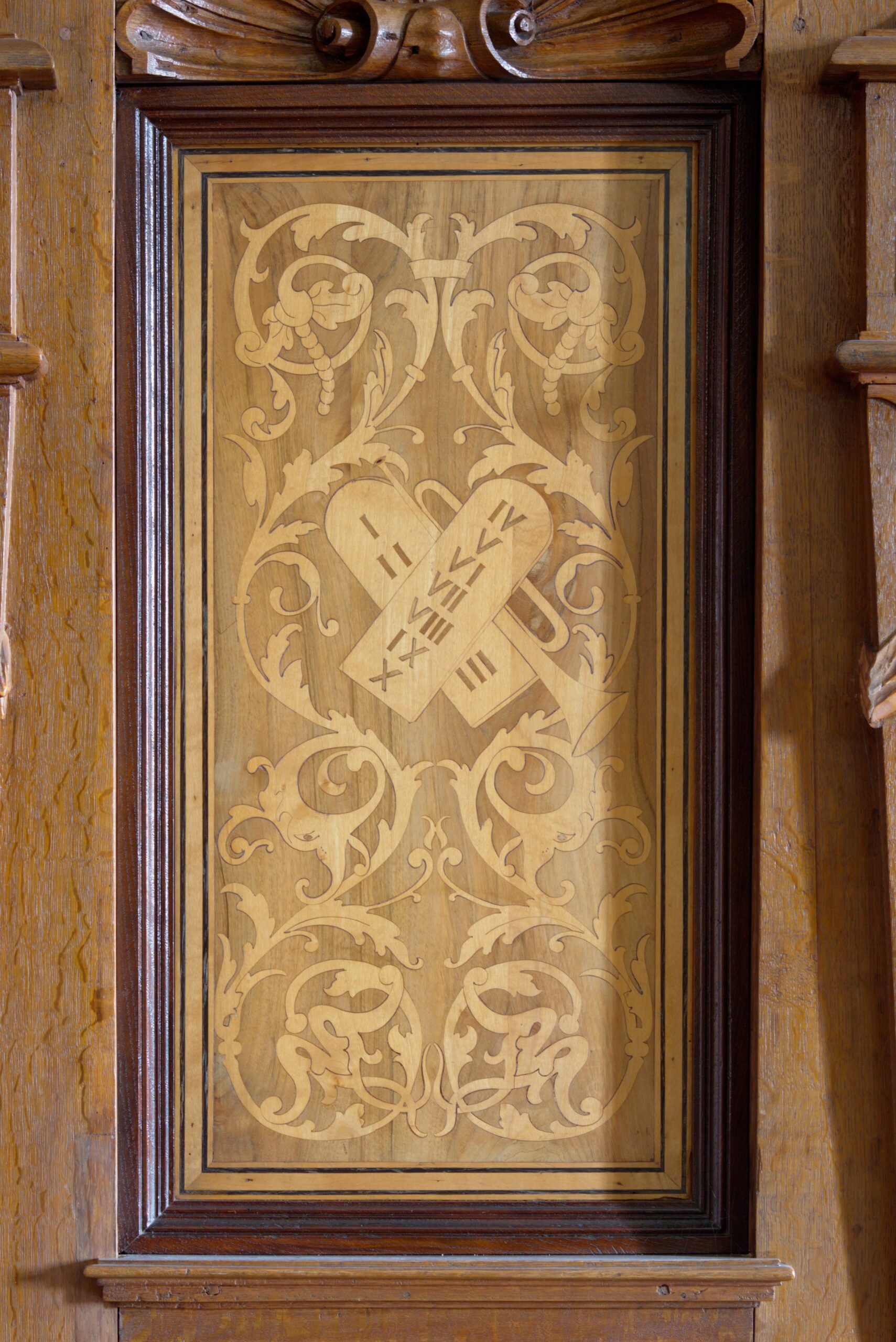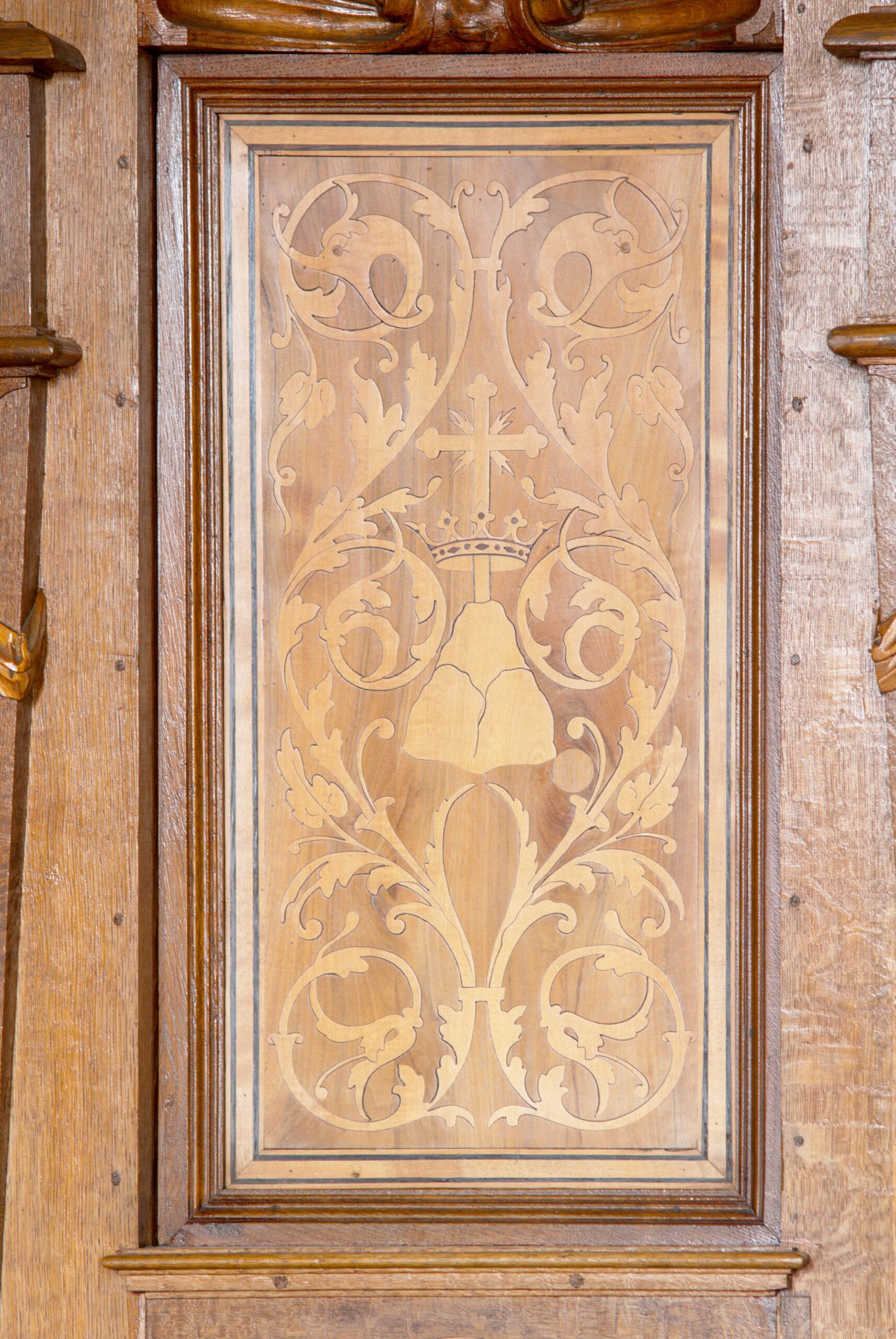 Szczególnym elementem wystroju Kapitularza – najpiękniejszej z bielańskich sal – są wspaniałe stalle biegnące wzdłuż trzech ścian wokół ołtarza. Bogato intarsjowane drewniane siedziska dla braci, budzą zachwyt swoją finezyjnością i kunsztem wykonania. Na oparciach można dostrzec nie tylko wyrafinowane motywy dekoracyjne i roślinne, ale też choćby oba herby zakonne (kamedułów i kongregacji Monte Corona) czy rysunek tablic Mojżeszowych.