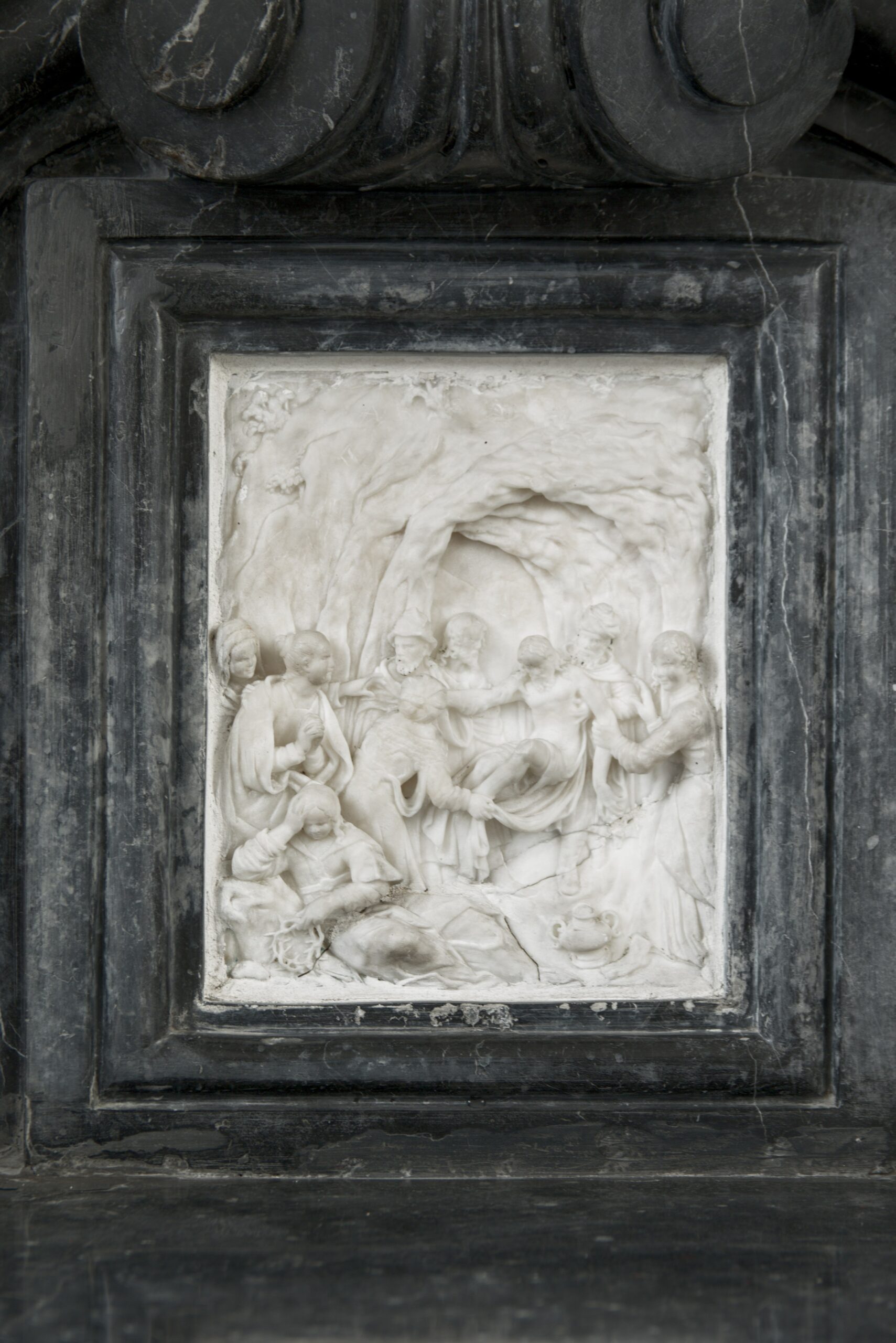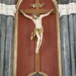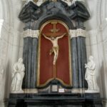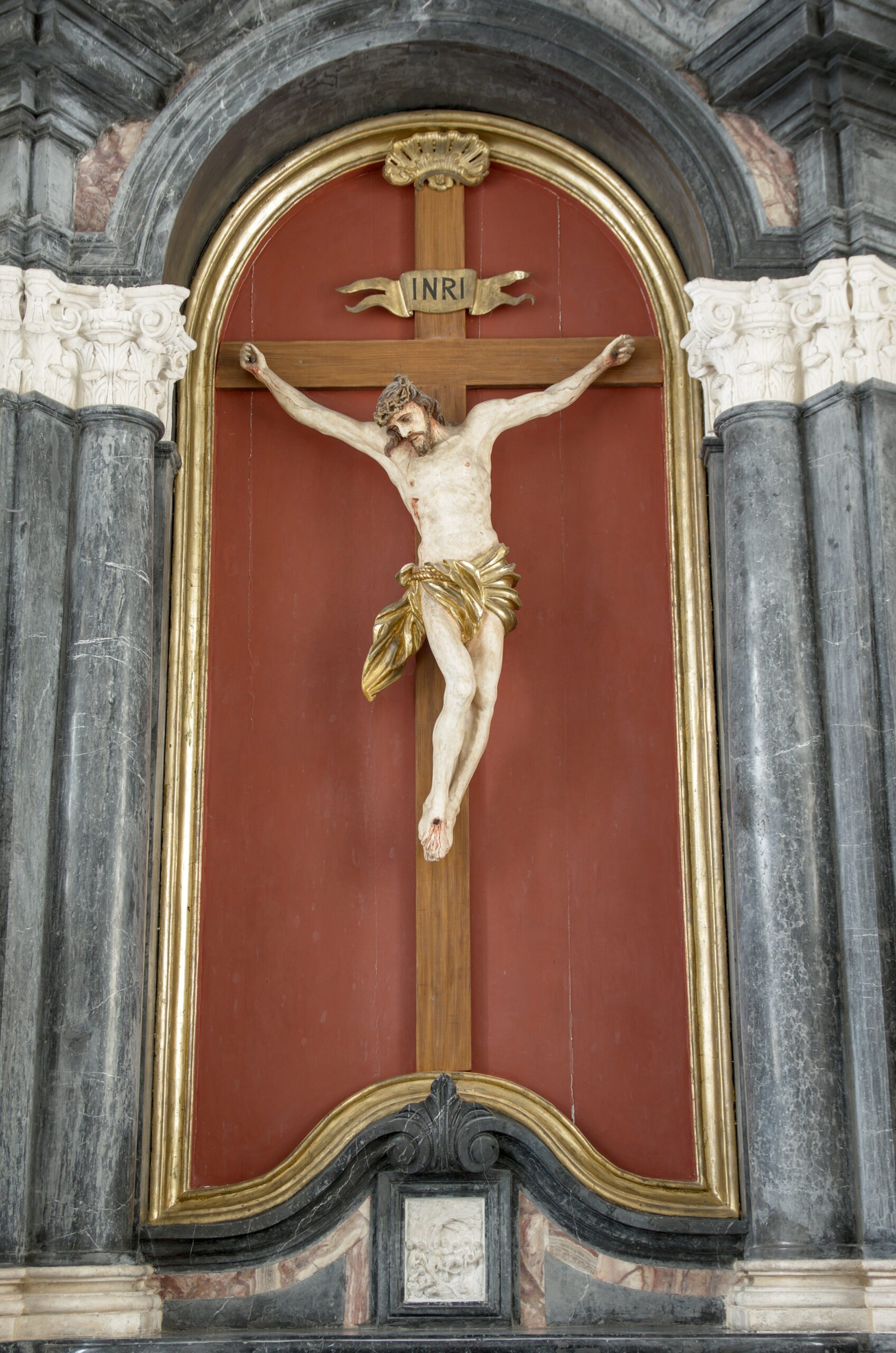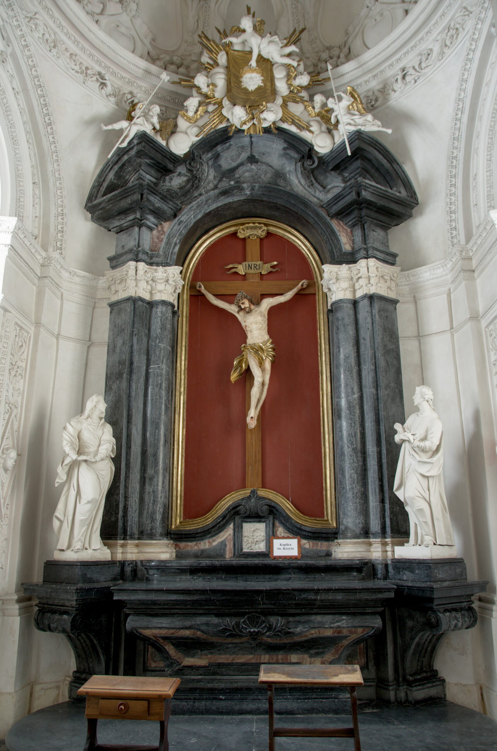 kaplica św. Krzyża (Czartoryskich): ołtarz z krucyfiksem i alabastrową płaskorzeźbą