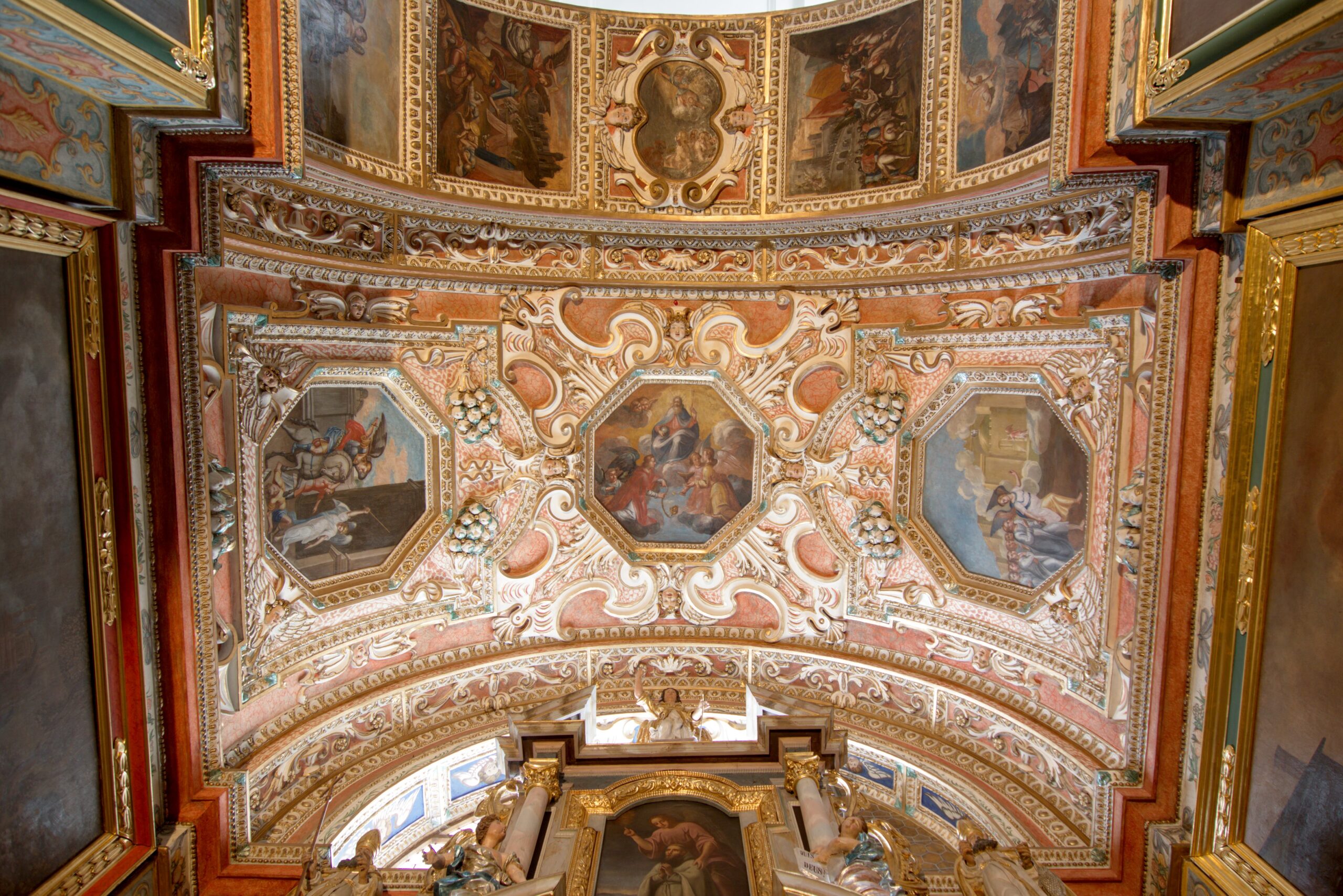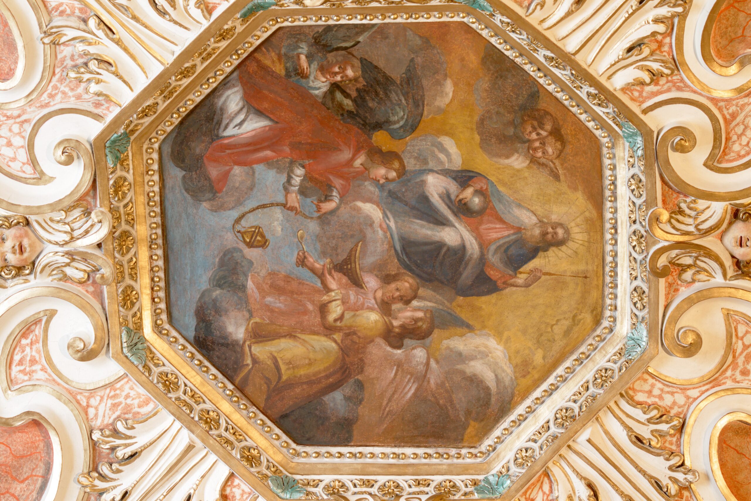 Kaplica św. Michała Archanioła chlubi się zdobnym, barokowym sklepieniem z finezyjną ornamentyką stiukową. Pomiędzy pozłacanymi dekoracjami znajduje się osiem scen malarskich. Przedstawiają one sceny biblijne z udziałem Michała Archanioła, a w centralnym punkcie nad ołtarzem tronującego Boga Ojca.