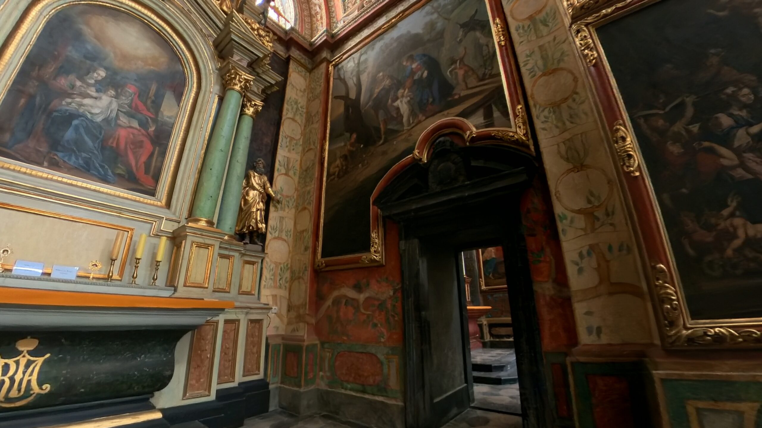 Strop kaplicy św. Rodziny zdobią wyrafinowane dekoracje stiukowe o bogatej kolorystyce. Dopełniają je malarskie medaliony o tematyce religijnej. Boczne ściany ozdabia sześć obrazów przedstawiających m.in. sceny z życia małego Jezusa. Przestrzenie między nimi wypełnia piękna polichromia.