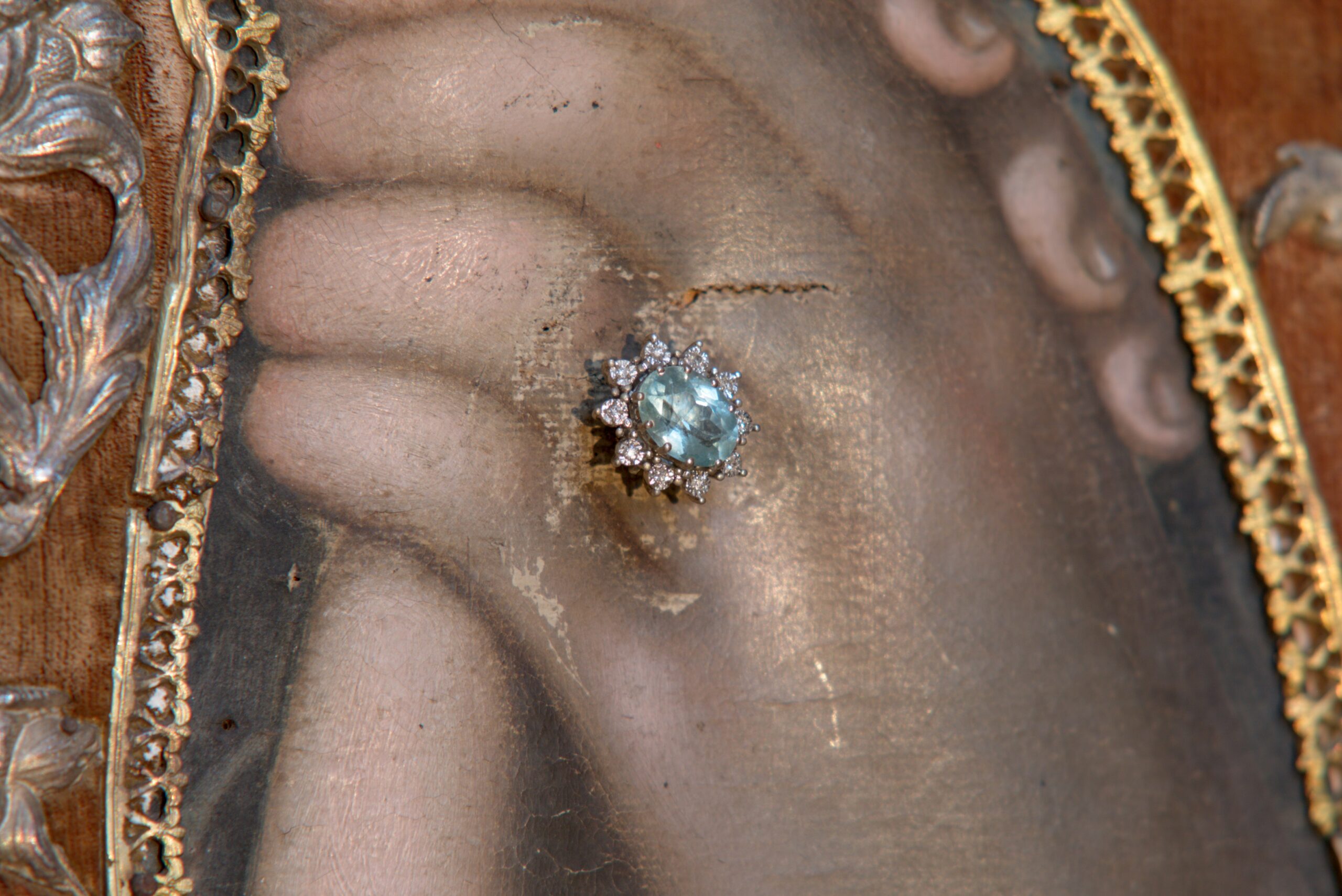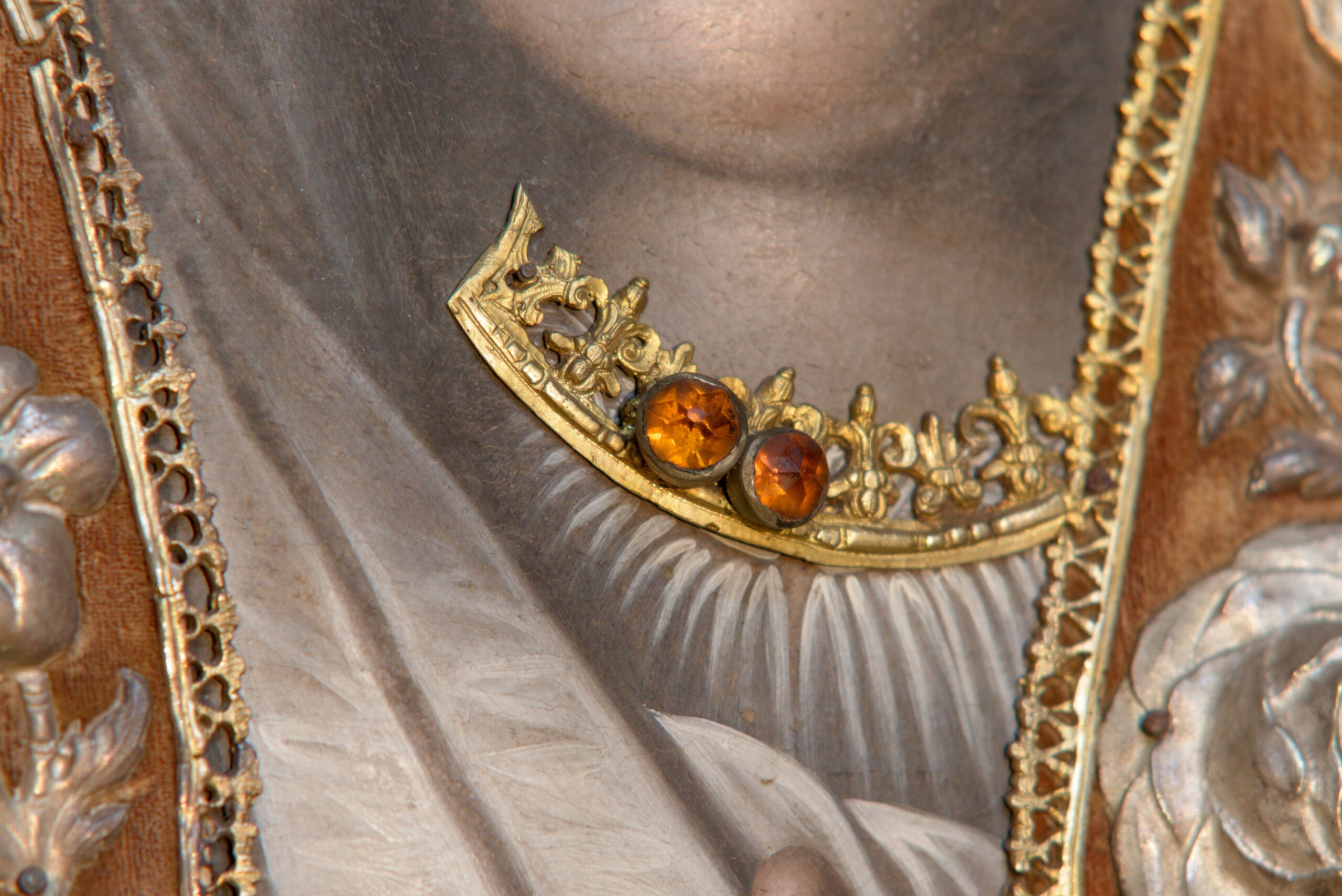 Autorstwo tego pięknego obrazu przypisuje się Wanantemu z Subiaco, malarzowi kamedule. Uwagę zwraca sukiemka Maryi i tło obrazu, wykonane ze srebra. Odprawienie przed tym obrazem mszy żałobnej skutkowało uzyskaniem odpustu zupełnego dla duszy zmarłego, w intencji którego ofiarowano mszę.