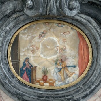 kaplica św. Sebastiana (Lubomirskich): alabastrowy medalion (Zwiastowanie)